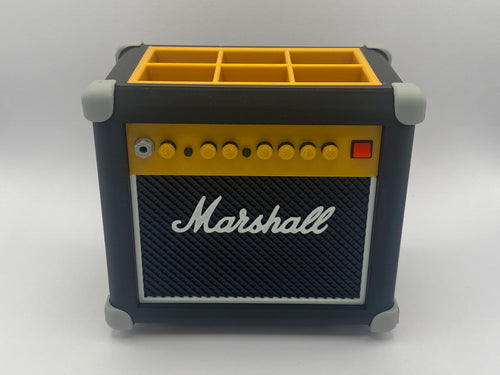 Su diseño en forma de mini ampli no solo queda brutal en cualquier escritorio, pedalera o estudio, sino que además te permite tener siempre tus púas organizadas y a mano. Compatible con púas estándar y fácil de usar: insertas, sacas y sigues tocando sin perder el ritmo.
